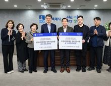 [경기탑뉴스=박봉석 기자] ㈜해머앤아머가 장학기금 1000만 원, 수원시새마을문고가 장학기금 400만 원을 수원시장학재단에 기탁했다. 윤삼열 ㈜해머앤아머 대표와 이종선 수원시새마을문고 회장은 10일 수원시청을 방문해 기부금을 전달했다. 이날 전달식에는 이재준 수원특례시장, 윤삼열 대표, 최우영 상무, 이종선 회장, 수원시장학재단 박춘근 이사장, 노수용 사무국장 등이 참석했다. 윤삼열 ㈜해머앤아머 대표는 “의사이자 연구자로서 사회로부터 받은 혜택을 다시 나누는 것이 제 역할이라 생각한다”며 “학생들이 학업에 전념하고 꿈을 펼치는 데 작은 도움이 되길 바란다”고 말했다. 이종선 수원시새마을문고 회장은 “최근 바자회에서 모은 수익금을 장학재단에 기부하게 돼 매우 뜻깊다”며 “청소년들이 학업과 꿈을 이어가는 데 작은 디딤돌이 되길 바란다”고 밝혔다. 박춘근 수원시장학재단 이사장은 “지역사회와 기업이 함께 인재를 키워가는 선한 영향력에 깊이 감사드린다”며 “기부자의 뜻을 소중히 담아 학생들에게 더 많은 기회를 제공하고, 그 성과를 지역사회와 나누겠다”고 말했다. 이재준 수원시장은 “