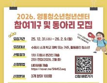 [경기탑뉴스=박봉석 기자] 수원시청소년청년재단 영통청소년청년센터가 2026년 활동에 함께할 청소년 참여기구 및 동아리 참가자를 모집한다. 모집 대상은 청소년운영위원회, 놀이동아리, 문화예술동아리연합 총 3개 분야이며, 선발 인원은 약 100명이다. ▲청소년운영위원회는 기관 운영 전반에 대해 청소년이 직접 의견을 제안하는 활동으로, 청소년의 주도성과 참여를 강화한다. ▲놀이동아리는 공동체 기반 놀이를 통해 건강한 또래 관계를 형성하고, ▲문화예술동아리연합은 댄스·밴드 등 다양한 장르에서 청소년의 문화예술 역량을 강화하는 동아리이다. 참여기구 및 동아리는 2026년 한 해 동안 진행되며, 센터의 주요 사업과 연계된 다양한 프로젝트에 참여하게 된다. 참여기구 및 동아리 모집 기간은 2026년 2월 9일까지이며, 신청은 홍보물 내 QR코드를 통해 온라인 신청서(네이버폼)를 작성해 제출하면 된다. 선발된 청소년들은 다양한 프로그램을 주도적으로 운영하게 된다. 영통청소년청년센터 관계자는“참여기구 및 동아리 활동은 청소년이 단순 참여자가 아닌, 스스로 활동을 만들어가는 주체로 성장할 수 있는 기회”라며 “다양한 관심과 열정