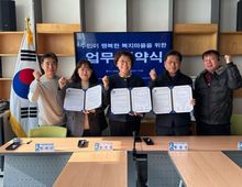 [경기탑뉴스=박봉석 기자] 수원시 권선구 금곡동 행정복지센터는 14일, 금곡동 지역사회보장협의체 및 경기남부슈퍼마켓협동조합과 함께 취약계층 지원을 위한 업무협약(MOU)을 체결했다. 이번 협약은 관내 복지 사각지대에 놓인 취약계층 주민들에게 생활에 필요한 물품을 지원하고, 지역사회 나눔 문화를 확산하기 위해 마련됐다. 협약에 따라 슈퍼마켓협동조합은 식품등을 후원하며, 금곡동 행정복지센터와 지역사회보장협의체는 지원 대상자 발굴 및 물품 전달 등 연계 역할을 수행할 예정이다. 황철성 이사장은 “지역 주민들과 함께 성장해 온 만큼 어려운 이웃을 돕는 데에도 책임감을 느끼고 있다”며 “이번 협약을 계기로 실질적인 도움이 될 수 있는 나눔 활동을 지속적으로 이어가겠다”라고 말했다. 장성임 금곡동장은 “지역 상생을 위해 뜻을 모아주신 경기남부 슈퍼마켓협동조합에 감사드린다”며 “앞으로도 민·관이 협력해 취약계층 지원과 복지 사각지대 해소를 위해 지속적으로 노력하겠다”라고 전했다.