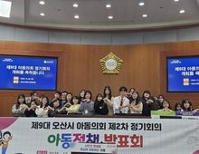 [경기탑뉴스=박봉석 기자] 오산시는 지난 20일 오산시의회 본회의장에서 ‘제9대 오산시 아동의회 제2차 정기회의’를 개최했다고 밝혔다. 제9대 오산시 아동의회는 오산시를 대표하는 아동 참여기구로, 지난 7월 발대식을 시작으로 본격적인 활동에 들어갔으며, 아동 권리 증진을 위한 캠페인과 시정 참여 확대를 위한 다양한 활동을 이어오고 있다. 이번 제2차 정기회의는 ‘아동정책 발표회’를 주제로 열렸으며, 아동의 참여권을 보장하고 시정 참여 기회를 확대하기 위해 5분 자유발언과 아동의회에서 직접 논의한 조례안 심의가 진행됐다. 이날 회의에서는 총 4건의 조례안이 상정돼 모두 원안 가결됐다. 5분 자유발언에서는 ▲학생들과 만들 교내 스마트폰 사용 규칙 ▲학교에서 동네까지, 내가 바라는 작은 변화 ▲오산 지역 안전과 교통 편의를 위한 개선 제안 ▲아파하는 지구, 청소년도 도울 수 있어요! 등 다양한 주제를 중심으로 아동 의원들의 자유로운 의견 발표가 이어졌다. 이날 가결된 조례안은 ▲오산시 어르신 스마트기기 활용 교육 지원 조례 ▲오산시 아동ㆍ청소년 흡연 예방 조례 ▲오산시 아동ㆍ청소년 문화, 예술 활동 지
