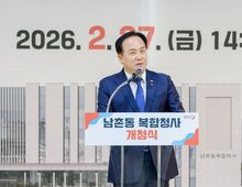 [경기탑뉴스=박봉석 기자] 오산시는 지역주민들의 숙원사업이었던 남촌동 복합청사가 지난 27일 개청식을 열고 본격 운영에 들어갔다고 28일 밝혔다. 개청식에는 오산시의회 의장과 시의원, 화성오산교육지원청 교육장 등이 참석했으며, 남촌동 통기타강습 수강생들의 식전 공연이 이어져 개청 의미를 더했다. 오산시는 이날 행사를 계기로 주민 생활권에서 행정·가족지원·독서 기능을 함께 이용할 수 있는 복합 거점 운영을 시작했다. 남촌동 복합청사는 기존 남촌동 행정복지센터와 가족센터, 청학도서관이 한곳에 자리 잡은 시설이다. 특히 남촌동 행정복지센터와 청학도서관은 35년간 사용해 온 기존 청사에서 이전하면서, 공간 협소와 시설 노후화로 제기돼 온 이용 불편을 해소하고 보다 넓고 쾌적한 환경에서 시민을 맞이하게 됐다. 복합청사는 부지면적 약 1만7천㎡, 연면적 약 7천㎡, 지상 3층 규모로 조성됐다. 두 개의 독립된 동을 복도로 연결해 기능별 공간은 분리하되 이용 동선은 유기적으로 이어지도록 설계됐다. 행정복지센터동에는 남촌동 행정복지센터와 가족센터가 입주했다. 행정복지센터는 1층 민원실, 2층 강의실·