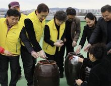 [경기탑뉴스=박봉석 기자] 수원시 팔달구 화서1동은 지난 3월 3일, 화서1동 행정복지센터에서 주옥경 화서1동 새마을부녀회장의 재능 나눔으로 저소득 계층에 전달할 수제 된장 담그기 행사를 진행했다. 이 사업은 화서1동 지역사회보장협의체 특화사업 중 하나로 화서1동 사회복지공동모금회 기금으로 추진됐으며, 메주와 소금물을 알맞은 비율로 배합하여 항아리에 메주를 직접 띄운 뒤, 홍고추와 참숯을 더해 위생과 맛을 함께 살리는 전통 방식으로 된장을 담갔다. 정성으로 담근 된장은 60일간의 숙성 과정을 거쳐 완성되며, 5월경 에이블장애인직업적응훈련센터 훈련생들과 함께 포장 작업을 진행한 뒤 관내 저소득층 50가구에 전달할 예정이다. 이는 단순한 물품 지원을 넘어 지역 내 나눔과 자립의 가치를 현장에서 직접 실천한다는 점에서 그 의미를 더하고 있다. 이날 행사에 참여한 황규돈 팔달구청장은 “지역을 위해 묵묵히 헌신해 주시는 협의체 위원들과 자원봉사자들께 깊이 감사드린다”며, “민·관이 함께하는 나눔 활동이 더욱 확산될 수 있도록 현장에서 소통하며 지원을 아끼지 않겠다”고 밝혔다. 한편, 화서1동 지역사회보장협의
