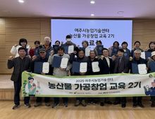 [경기탑뉴스=한진선 기자] 여주시농업기술센터는 지난 5일, 농업기술센터 친환경교육관에서 ‘2025년 농산물가공창업교육 2기 수료식’을 열고 올해 교육과정을 마무리했다. 이번 교육은 농산물 가공에 관심 있는 관내 농업인을 대상으로 모집하여 지난 10월 17일부터 매주 4시간씩 총 8회에 걸쳐 진행됐으며, 교육생들은 32시간의 교육을 통해 식품가공 창업에 필요한 핵심 지식과 실무 역량을 체계적으로 습득했다. 이날 수료식에서는 교육과정을 이수한 18명의 교육생에게 수료증이 전달됐다. 수료생들은 향후 농산물종합가공센터 이용 및 보조사업 우선지원 등 다양한 창업 지원 혜택을 받을 수 있게 된다. 전창현 기술기획과장은 “농산물종합가공센터를 이용하는 관내 농업인이 해마다 증가하고 있다”며 “앞으로도 전문 인력을 지속적으로 양성하고 농업인의 소득 증대에 실질적인 도움을 줄 수 있도록 노력하겠다”고 말했다.