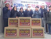 [경기탑뉴스=한진선 기자] 포천시 선단동청소년지도협의회는 지난 23일 영양 가득한 간식으로 구성된 ‘든든! 튼튼! 키움박스’를 한부모 가족 중학생 10명에게 전달했다. 이번 사업은 균형 잡힌 영양 섭취를 지원해 성장기 청소년의 건강한 성장을 돕기 위해 추진됐다. 이에 따라 ‘든든! 튼튼! 키움박스’에는 컵밥과 과자, 김 등 간식 12종이 담겨 실질적인 도움이 될 수 있도록 구성됐다. 정은주 선단동청소년지도협의회 회장은 “이번 키움박스를 통해 성장기 중학생들이 든든하게 먹고 튼튼하게 성장하길 바란다”며 “앞으로도 지역사회 청소년들의 건강한 미래를 위해 지속적인 관심과 지원을 이어가겠다”고 말했다. 이계향 선단동장은 “지역 청소년들이 밝고 건강하게 성장할 수 있도록 애써주시는 위원님들의 따뜻한 마음이 큰 힘이 되고 있다”며 “청소년들을 위한 관심과 나눔을 실천해 주신 데 대해 깊이 감사드린다”고 말했다.