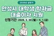 [경기탑뉴스=박봉석 기자] 안성시는 대학생 및 대학원생들의 교육비 부담을 덜어주기 위해 ‘2026년 상반기 대학생 학자금 대출이자 지원사업’을 시행한다고 밝혔다. 지원 대상은 공고일(2026. 3. 24.)기준으로 안성시에 주소를 두고 있는 대학생 및 대학원생(휴학생 포함)이다. 신청 기간은 3월 30일부터 5월 1일까지이며, 신청을 희망하는 학생은 주소지 읍·면·동 행정복지센터 또는 안성시청(미래교육과)를 방문하여 신청서와 구비서류(주민등록등본, 재학증명서)를 제출하면 된다. 지원 대상자로 선정되면 대상자가 한국장학재단에서 대출받은 학자금에 대한 2025년 하반기(7월~12월) 발생 이자를 안성시가 지급하게 된다. 지급은 대출 계좌 원리금에서 차감하는 방식으로 진행되며, 지원 결과발표 및 이자는 오는 6월 지급 예정이며, 확정된 시점에 한국장학재단 인터넷 홈페이지 및 고객센터에서 확인할 수 있다. 안성시 관계자는 “학자금 대출이자 지원사업을 통해 대학생들의 학업 부담을 완화하고, 학업에 전념할 수 있는 환경을 조성하는 데 도움이 되길 바란다”고 말했다.