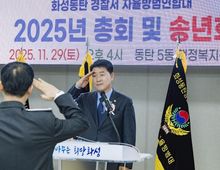 [경기탑뉴스=박봉석 기자] 화성특례시의회는 29일, 동탄 5동 행정복지센터에서 열린 녩년 동탄자율방범연합대 종무식’에 참석해 올 한 해 지역 치안을 위해 헌신한 대원들을 격려하고 우수 대원 표창을 축하했다. 이날 종무식에는 배정수 의장을 비롯해 김종복 문화복지위원장, 김상균·위영란·유재호·이은진·전성균 의원이 참석했고, 강은미 동탄경찰서장·성보경 동탄지구대장 및 각 지대 방범대장 및 대원 등 약 70명이 함께했다. 배정수 의장은“올 한 해 시민의 안전을 지키기 위해 아낌없이 헌신해 주신 모든 자율방범대 대원 여러분께 깊은 감사를 드린다”며“늦은 밤까지 조끼를 입고 거리를 걸으며 지역을 지켜주신 여러분의 노력이 화성을 가장 안전한 도시로 만드는 힘”이라고 강조했다. 이번 행사는 2025년도 활동 보고, 우수대원 및 우수지대 표창 수여 순으로 진행됐으며, 올해는 시장상·의장상 등 총 30명의 대원에게 표창이 수여됐다. 한편, 동탄자율방범연합대는 지역 내 각종 사고를 예방하고 시민의 생명과 재산을 보호하기 위해 활동하고 있으며, 동탄 전역의 지대를 중심으로 총 296명의 대원이 방범 순찰 등 지역 치안