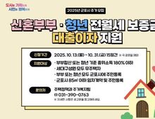 [경기탑뉴스=박봉석 기자] 군포시는 신혼부부와 청년들의 주거비 부담 경감과 안정적인 거주환경을 위해 추진 중인 ‘군포시 신혼부부 및 청년 전월세 보증금 대출이자 지원사업’의 지원 기준을 대폭 완화하고 이에 따라 추가 지원 대상자를 모집한다고 밝혔다. 기존에는 신혼부부 연소득 8천만원, 청년 4천만원 이하로 제한됐던 소득기준을 기준 중위소득 180%로 상향 조정하고 대출잔액 한도기준을 삭제함으로써 더 많은 신혼부부와 청년이 혜택을 볼 수 있도록 했다. 지원 대상은 △군포시에 주민등록 △부부합산 또는 청년 소득이 기준 중위소득 180%이하 △세대구성원 모두 무주택자 등 모든 조건을 충족하는 신혼부부와 청년이다. 다만 기초생활보장수급자와 공공임대 거주자, 주택도시기금 전·월세 자금 대출자(버팀목 등), 동일년도 ‘군포시 신혼부부·청년 전월세 보증금 대출이자 지원사업’ 신청 가구는 지원 대상에서 제외된다. 지원내용은 신혼부부의 경우 주택전세자금 대출잔액의 2%를 연 1회, 최대 3백만원까지, 청년의 경우 대출잔액의 1%를 연 1회, 최대 1백만원까지 지원 가능하며 지원금은 자격 여부 심사 후 선정자에 한해