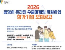 [경기탑뉴스=박봉석 기자] 광명시가 관내 중소기업의 해외 판로 개척과 수출 경쟁력 강화를 돕는다. 시는 총 8천만 원 규모의 ‘수출·판로개척 지원사업’ 참여 기업을 모집한다고 24일 밝혔다. 이 사업은 해외시장 진출에 어려움을 겪는 관내 중소기업의 부담을 덜고, 수출 확대와 신규 판로 확보를 돕기 위해 마련했으며, ‘온라인 수출 마케팅 지원사업’과 ‘수출물류비 지원사업’ 두 부문으로 나눠 운영한다. 우선 ‘온라인 수출 마케팅 지원사업’은 ▲해외 비투비(B2B) 계정 구입 ▲해외 사회관계망서비스(SNS) 마케팅 ▲외국어 홍보물 제작 등 3개 분야다. 해외 B2B 계정 구입비는 알리바바, 글로벌소시스 등 글로벌 플랫폼 계정 구매 비용을 지원하고, 해외 SNS 마케팅은 구글, 유튜브, 웨이보 등 글로벌 채널 홍보 비용을 지원한다. 외국어 홍보물 제작은 카탈로그, 홈페이지, 홍보동영상 가운데 1개를 선택해 지원받을 수 있다. 지원금은 분야에 따라 차등 적용한다. 해외 B2B 계정 구입비와 해외 SNS 마케팅은 총 소요비용의 100%를 최대 350만 원까지 지원하고, 외국어 홍보물 제작은 총 소