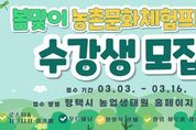 [경기탑뉴스=박봉석 기자] 평택시는 오는 4월부터 농업기술센터에서 도시민의 정서적 안정과 농촌 문화 가치 확산을 위한 '2026년 봄맞이 농촌문화체험 프로그램’을 운영한다. 이번 프로그램은 자연 재료를 활용해 도시민들이 일상 속 스트레스를 해소하고 농업·농촌을 친숙하게 느낄 수 있도록 기획됐으며, 3일부터 16일까지 교육생을 모집한다. 교육 과정은 실습 중심의 4개 강좌로 구성되어 시민들에게 다채로운 즐거움을 선사할 예정이다. 주요 내용은 △평택 특산물을 활용한 로스팅 및 홈카페 메뉴 만들기 △버려지는 자원을 재활용하는 리사이클링 양말목 공예 △천연 아로마 에센스로 화장품을 직접 만드는 힐링 아로마 클래스 △나무에 온기를 담아내는 현대 우드버닝 등 자연 친화적인 취미 활동으로 꾸며진다. 특히 이번 교육은 어렵게 느껴졌던 ‘탄소중립’이나 ‘지역 상생’이라는 가치를 평택 특산물로 맛있는 메뉴를 만들고 예쁜 소품을 빚어보는 활동에 녹여내, 시민들이 일상에서 즐겁고 친근하게 경험할 수 있도록 구성했다. 평택시 농업기술센터 관계자는 “이번 봄맞이 프로그램이 시민들에게는 배움의 즐거움과 휴식을, 농촌에는 활력