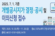 [경기탑뉴스=박봉석 기자] 수원시 권선구는 다가오는 30일에 개별공시지가를 결정·공시하고 10월 30일부터 11월 28일까지 이의신청을 받는다. 이번에 공시되는 개별공시지가 대상 토지는 지난 1월 1일부터 6월 30일까지 토지이동(분할, 합병, 지목변경 등)이 발생한 599필지이고, 감정평가사의 검증과 수원시 부동산가격공시위원회 심의를 통해 결정됐다. 지가열람은 권선구청 토지관리과 및 관할 행정복지센터에서 가능하며, 온라인 열람은 부동산공시가격알리미 홈페이지에서 가능하다. 결정지가에 대해 이의가 있는 토지소유자 및 이해관계인은 11월 28일까지 이의신청서를 권선구청 토지관리과 및 관할 행정복지센터 또는 부동산공시가격알리미 홈페이지에 제출할 수 있다. 이의신청된 필지는 토지특성을 재확인하고 인근 지가와의 균형 등을 고려하여 면밀하게 재조사하며, 감정평가사 검증과 수원시 부동산가격공시위원회 심의를 거쳐 12월 22일에 최종 결정된다.