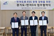 [경기탑뉴스=박봉석 기자] 경기도는 24일 경기도청 북부청사에서 경기남부도로(주), 제삼경인고속도로(주), 일산대교(주) 등 도내 민자도로 사업자 3개사와 ESG(환경·사회·투명) 경영 강화를 위한 업무협약을 체결했다. 지속가능한 도로 환경 조성과 지역사회 공헌활동 활성화를 위해 마련된 이번 협약체결에는 김대순 경기도 행정2부지사와 민자도로 사업자 대표이사가 참석했다. 협약의 주요내용으로는 환경 측면에서 온실가스 배출을 최소화하도록 친환경 시설물․장비 도입에 힘쓰고, 사회적 책임으로는 지역사회 공헌활동과 도로 이용객의 안전․보건 강화를 포함한다. 지배구조 부문으로는 법과 윤리를 준수하고 투명한 기업 운영 체계를 마련하는 데 적극 협력하는 내용을 포함한다. 경기도는 민자사업자의 원활한 ESG 경영을 위해 필요시 적극적으로 행정지원할 예정이며, 협약기관 간 실무협의회를 구성하여 ESG 경영 강화에 대하여 지속적으로 논의할 계획이다. 이번 협약으로 민자도로 수익의 지역사회 환원을 통해 민자도로에 대한 ‘비싼 요금’ 또는 ‘과도한 수익 추구’라는 기존 인식을 전환하고, RE100과 같은 글로벌 환경 목표에