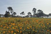 [경기탑뉴스=한진선 기자] 여주시 남한강 출렁다리 남단 일원 연양동에 위치한 금은모래강변공원 초화원에 황화코스모스가 만개하여 손님맞이 준비를 마쳤다. 금은모래강변공원 초화원(2,400㎡, 약700평)은 매년 다양한 종류의 초화류를 계절별로 심어 색다른 풍경을 연출하고 있다. 가을을 맞이하여 황화코스모스를 심었으며 만개한 황화코스모스 언덕이 절정의 풍경을 이루고 있다. 금은모래강변공원은 아이들이 이용하기 좋은 아이누리 놀이터가 있으며, 놀이터와 인접하여 피크닉장이 마련되어 있어 가족 단위 방문객이 가을을 즐길 수 있는 최적의 공원이다. 또한 방문객들의 건강을 증진하고 힐링 할 수 있도록 외곽 순환산책로가 조성되어 있고 올해 흙향기 맨발길을 조성하여 휴식과 운동을 겸할 수 있도록 시설을 확보했다. 여주시(산림공원과장 장홍기)는 야외 활동하기 좋은 화창한 가을에 활짝핀 코스모스를 볼 수 있고 아이누리놀이터와 피크닉장, 흙향기 맨발길 등 여러 시설들을 이용할 수 있는 금은모래강변공원을 많이 찾아와 주시길 바라며, 향후 다양한 사업을 발굴하는데 적극 앞장서겠다고 밝혔다.