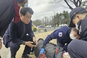[경기탑뉴스=박봉석 기자] 하은호 군포시장이 길에 쓰러진 할머니를 발견하고 신속한 신고와 응급처치를 통해 무사귀환을 도와 화제다 하은호 시장은 27일 오전 10시경 관내 출장길에 산본중앙공원 사거리 KT옆 공원에 쓰러진 할머니를 발견했다. 하 시장 일행은 즉시 차에서 내려 119 신고를 하고 할머니를 편안한 자세로 높혀 상태를 살피며 의식을 잃지 않도록 간호했다. 즉시 출동한 119구조대는 할머니의 의식을 잃지 않도록 주의하며 응급조치를 했고 상태가 호전되어 구급차를 타고 귀가한 것으로 알려졌다. 하은호 시장은 유난히 재난 구조 현장과 가깝다. 고교생이었을 때 안양 일대에 대홍수가 났을 때 대림대학교 앞에서 버스 안으로 물이 차오르는 현장에서 사람들을 구조한 적이 있다. 지난 2022년에는 산본역 피트인 사거리에서 횡단보도 옆에 쓰러진 노인을 발견하고 이번처럼 신속하게 신고와 구조를 통해 무사귀환을 도왔다. 하은호 군포시장은 “해빙기 사고 예방을 위해 직원들과 회의를 마치고 나서는 길이었다”며 “봄이 오는 길목에서 어르신들의 각별한 주의가 필요하다”고 말했다.