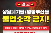[경기탑뉴스=박봉석 기자] 안성시가 12월 12일까지 농촌지역 영농폐기물, 생활쓰레기 등 불법소각 행위에 대하여 강력한 단속을 한다고 밝혔다. 이번 단속은 안성시 전역의 논밭 등의 경작지와 산림인접, 공사장 등 불법 소각 취약지역을 중심으로 주·야간에 진행되며 관련 부서 내 특별단속반을 편성해 폐기물 불법소각 현장에서 직접 점검할 계획이다. 단속 대상은 고춧대, 깻대 등 영농폐기물 불법소각, 해충 제거를 위해 논밭을 태우는 행위, 화목보일러에 적법한 연료 외 쓰레기를 함께 태우는 행위로 불법소각 단속 적발 시 '폐기물관리법'에 따라 100만 원 이하의 과태료 부과 등 강력한 행정 처분을 통해 불법행위 근절에 나설 방침이다. 송석근 자원순환과장은 “불법소각 적발 시 강력한 행정조치를 통해 시민이 체감할 수 있는 환경개선을 이루겠다”고 말했다. 이어 “불법소각을 발견하면 즉시 자원순환과로 신고해 달라”며 “깨끗한 안성시를 만들기 위해 시민 여러분의 적극적인 협조를 부탁드린다”라고 밝혔다.