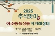 [경기탑뉴스=한진선 기자] 여주시는 추석을 앞두고 오는 10월 1일부터 2일까지 이틀간 시청 정문 주차장에서 ‘2025년 추석 명절맞이 농산물 직거래장터’를 운영한다. 이번 장터는 농가에는 안정적인 판로를 제공하고, 시민들에게는 신선하고 품질 좋은 여주 농산물을 합리적인 가격에 만나볼 수 있는 기회를 마련하기 위해 준비됐다. 장터에서는 사과, 배, 밤, 잡곡세트, 엄나무진액, 산양산삼, 고송버섯, 가지커피, 군고구마커피, 참기름, 들기름, 꿀, 사과대추, 고구마 등 여주의 다양한 특산품을 직거래 가격으로 판매한다. 여주시 농정과 관계자는 “추석을 맞아 과일이나 농산물을 선물하거나 구입할 계획이 있다면 여주시청 앞 직거래장터를 꼭 방문해 보시길 바란다”며 “합리적인 가격에 다양한 농특산물을 구매할 수 있는 좋은 기회인 만큼 많은 시민들의 참여를 기대한다”고 전했다.