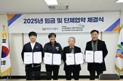 [경기탑뉴스=한진선 기자] 여주도시공사와 민주노총 공공운수노조 여주도시공사지회는 12월 9일 여주도시공사 사옥에서 2025년 임금 및 단체협약 체결식을 개최했다고 밝혔다. 이번 협약은 상호 신뢰와 존중을 바탕으로 진행된 성실한 교섭의 결실로, 노사 상생과 지속 가능한 발전을 위한 중요한 발판이 될 전망이다. 공사와 노동조합은 이번 협약을 통해 직원들이 안정적인 근무여건 아래 역량을 발휘할 수 있는 환경을 조성하고, 공공기관으로서 사회적 책임을 다하기 위한 제도 개선과 협력 체계를 강화해 나갈 방침이다. 임명진 사장은 “이번 임금·단체협약은 노사 간 소통과 이해를 바탕으로 이루어낸 결실”이라며, “앞으로도 신뢰 기반의 노사 협력을 통해 시민에게 더 나은 공공서비스를 제공할 수 있도록 노력하겠다"고 밝혔다. 여주도시공사는 앞으로도 합리적인 노사관계 정착을 위해 소통과 협력을 강화하고, 시민 중심의 공기업으로서 책임과 역할을 다하기 위한 다양한 노력을 이어갈 계획이다.