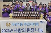 [경기탑뉴스=박봉석 기자] 수원시 팔달구 우만1동 주민자치회는 지난 9일, 우만1동 행정복지센터에서 지난해 전통 방식으로 담가 숙성한 된장을 관내 취약계층에게 전달하는 ‘사랑의 된장 나눔 행사’를 진행했다. 이번 행사는 2025년 주민자치 활성화 사업의 일환으로 추진된 ‘사랑의 된장 배우고 나누기’ 사업의 결실로, 지난해 전통 방식으로 직접 담근 된장을 약 1년간 정성껏 숙성한 뒤 어려운 이웃과 나누기 위해 마련됐다. 우만1동 주민자치회는 경기도 전통음식협회와 협업하여 다문화가정과 주민자치회 위원들을 대상으로 전통 장 담그기 교육을 실시하고, 메주 만들기부터 장 가르기까지 전 과정을 함께하며 전통 식문화 계승과 공동체 의식 함양에 힘써왔다. 이날 전달된 된장은 주민자치회 위원들의 정성과 기다림이 담긴 전통 장으로, 관내 취약계층 가구에 순차적으로 전달될 예정이다. 강경수 우만1동 주민자치회장은 “1년 동안 정성껏 숙성시킨 된장을 이웃과 나눌 수 있어 매우 뜻깊게 생각한다”며 “앞으로도 전통문화를 계승하고 따뜻한 나눔을 실천하는 주민자치회가 되도록 노력하겠다”고 말했다. 최명희 우만1동장