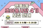 [경기탑뉴스=박봉석 기자] 영통구 영통1동은 영통1동 주민자치회가 지역 청소년의 자원봉사 참여 확대를 위해 3월 9일부터 3월 20일까지 관내 초·중학생을 대상으로 ‘초아봉사단 4기’ 단원을 모집한다고 밝혔다. 초아봉사단은 영통1동 주민자치회 활성화 사업의 하나로, 지난 2025년 운영된 3기 봉사단는 매월 1회 이상 다양한 봉사활동을 실시하며 마을과 이웃을 위한 나눔 활동을 실천해왔다. 이번에 모집하는 초아봉사단 4기는 관내 초·중학생 20명으로 구성되며, 청명산 꽃길 조성 활동을 비롯해 현장 체험학습, 마을축제 참여, 이웃 나눔 활동 등 다채로운 프로그램에 참여하게 된다. 신한길 영통1동장은 “초아봉사단 활동이 영통1동 청소년들에게 지역사회를 이해하고 공동체 의식을 키울 수 있는 소중한 경험이 되길 기대한다”고 말했다.