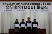 [경기탑뉴스=박봉석 기자] 경기도미래세대재단은 12일 옛 경기도청사 신관 4층 대회의실에서 수원·성남·시흥시청소년청년재단과 ‘경기도 청년 정책 연계 및 협력체계 구축 업무협약’을 체결했다. 협약의 핵심은 ▲청년 분야 공동사업 기획 ▲정책·사업 정보 공유 ▲참여 기반 강화다. 4개 재단은 청년 일경험, 진로·취업, 사회참여를 잇는 연계형 프로그램을 공동 발굴하고, 공동 조사·연구와 정책 제안으로 협력 범위를 넓힐 계획이다. 참여기구와 네트워크 교류도 확대한다. 프로젝트와 캠페인을 함께 추진하고, 전문 인력과 강사, 공간, 콘텐츠, 운영 노하우 등 인적·물적 자원을 상호 연계한다. 협약 이후에는 정례 협의체를 운영해 공동 과제를 발굴하고 협력 사업을 단계적으로 확대한다. 김현삼 경기도미래세대재단 대표이사는 “청소년기 경험이 청년기 지원으로 자연스럽게 이어지도록 재단 간 협력을 본격화하는 출발점”이라며 “공동 과제를 꾸준히 발굴하고 협업 체계를 촘촘히 다져 정책이 현장에서 성과로 이어지게 하겠다”라고 말했다. [뉴스출처 : 경기도청]