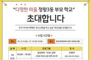 [경기탑뉴스=박봉석 기자] 시흥시 정왕3동 행정복지센터는 오는 12월 6일과 13일 양일간, 자녀와의 올바른 의사소통 방법을 배우고 부모 역할에 대한 자신감을 높일 수 있는 ‘다정한 마을 정왕3동 부모학교’를 운영한다. 교육 대상은 초등학생 이하 자녀를 둔 부모이며, 강의는 정왕3동 행정복지센터 대강당(3층)에서 진행된다. 교육 시간 동안 자녀는 같은 건물 2층 ‘꾸미 청소년 문화의 집’에서 마련된 영화 관람 프로그램에 참여할 수 있어 부모들이 안심하고 교육에 집중할 수 있도록 했다. 이번 부모학교에는 저서 '엄마 난중일기'의 저자로 많은 공감을 얻은 김정은 강사(엄마학교협동조합 이사)를 비롯해, 시흥시 교육자치과 소속 부모 교육 위촉 강사인 안정미, 이소영, 최윤정 강사가 함께한다. 강의는 다수의 부모 상담 경험을 바탕으로 실질적인 도움이 될 수 있는 주제를 선정해 자유로운 대화 형식으로 운영될 예정이다. 참여 신청은 12월 6일 강의는 12월 3일 17시까지, 12월 13일 강의는 12월 10일 17시까지 할 수 있다. 신청은 전화로 하면 된다. 양미현 정왕3동장은 “매달 복지대상자 가정을 방문