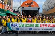 [경기탑뉴스=한진선 기자] 여주시는 추석 명절을 맞아 여주5일장 날인 30일 한글시장과 세종시장에서 전통시장 및 상점가 소비 촉진을 위한 장보기 행사와 물가안정 동참 캠페인을 진행했다. 이날 이충우 시장, 박두형 시의회 의장, 여주시 소상공인지원센터, 소상공인연합회, (사)소비자교육중앙회 여주시지회, 한글시장상인회, 세종시장상인회, 공무원 등 30여 명이 참여했다. 이충우 시장은 시장에서 추석 명절 성수품을 구입하고 경기침체로 어려운 상인들을 격려했다. 또 상인들에게 친절한 서비스 제공, 원산지 표시, 가격인상 자제를 당부했다. 또한 “추석 명절을 앞두고 시민들께서 안심하고 장을 볼 수 있도록 물가안정과 전통시장 활성화에 최선을 다하고 있다.”라며 “전통시장과 소상공인이 활기를 되찾을 수 있도록 시민 여러분의 많은 관심과 이용을 부탁드린다”라고 말했다. 한편, 여주시는 이달 23일부터 내달 9일까지를 물가안정 ‘추석 명절 물가안정 특별대책기간’으로 지정하고, 21개 주요 성수품 가격동향을 여주시 누리집을 통해 공표하고 있다.