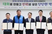 [경기탑뉴스=박봉석 기자] 경기도와 도청 3개 공무원노조는 악성민원 피해 특별휴가 부여 등이 담긴 단체협약에 합의했다. 김동연 경기도지사와 김진경 경기도의회 의장, 강순하 경기도청공무원 노동조합 위원장, 백승진 경기도통합공무원노동조합 위원장, 최형곤 전국공무원노동조합 경기도청지부 사무국장은 3일 경기도청 율곡홀에서 제7차 단체협약서에 서명했다. 김동연 지사는 “다들 격무에 시달리고 여러 가지 애로사항이 많을 텐데, 즐겁고 스스로 행복했으면 좋겠다. 그게 제 조직 관리와 인사 목표”라며 “직원들이 도청, 도의회로부터 케어를 받고 있다는 생각과 여건을 만들어야 한다. 줄탁동시(啐啄同時. 병아리가 알에서 나오기 위해서는 새끼가 안에서 울고 동시에 어미닭이 밖에서 쪼아야 한다)처럼 바깥에서 여건을 끊임없이 만들려고 노력하고 안에서는 스스로 공직생활을 하면서 즐거움을 찾는 것이 나아가 도민들에게도 좋은 일이라고 생각한다”고 말했다. 김 지사는 이어 “짧은 기간 동안에 서로 좋은 대화를 나누고 수용률 98.7%라는 결과를 받게 돼 기쁘다. 앞으로 끊임없이 대화를 나눴으면 좋겠고 그렇게 하기 위해 서로 간에 신뢰했으면 한다