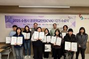 [경기탑뉴스=박봉석 기자] 수원시국제교류센터가 22일 센터에서 ‘수원시 공공외교단(SCVA) 12기’ 수료식을 열고, 단원 16명에게 수료증을 전달했다. 우수활동자 4명에게는 상장을 수여했다. 수원시 공공외교단 12기는 수원시국제교류센터가 수원시에 거주하는 외국인을 대상으로 운영하는 다양한 지역 이해 프로그램을 기획하고, 진행을 지원했다. 4월 9일부터 12월 22일까지 ▲지역 이해 프로그램 기획‧운영 지원 4회 ▲센터 홍보 콘텐츠 제작(영문 블로그 및 카드뉴스) 81건 ▲국제교류 행사 지원 10회 등 활동을 했다. 수원시국제교류센터는 내년에 수원시 공공외교단 13기를 모집할 예정이다.