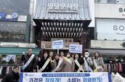 [경기탑뉴스=박봉석 기자] 수원시 팔달구는 2025년 11월 26일 지동교 일원(지동시장·미나리광시장·못골시장)에서 ‘제6회 새빛세일페스타 연계 Boom-up 물가안정 릴레이 캠페인’을 실시했다. 이날 행사에는 경제교통과 직원과 물가모니터요원 등 20여 명이 참여해 현수막·전단 등을 활용해 전통시장 및 착한가격업소 이용을 홍보하고, 불공정 상행위 근절과 건전한 소비문화 확산을 안내했다. 또한 새빛세일페스타 참여 독려 등 지역경제 활성화를 위한 시책도 함께 홍보했다. 허두경 팔달구 경제교통과장은 “릴레이 캠페인을 통해 물가안정 분위기를 확산하고 전통시장과 골목상권에 활력이 더해지길 기대한다”며 시민들의 적극적인 이용을 당부했다. 이번 캠페인은 11월 24일부터 27일까지 장안구·권선구·팔달구·영통구가 릴레이 방식으로 이어가며 수원시 전역에서 진행된다.