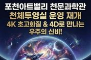 [경기탑뉴스=한진선 기자] 포천문화관광재단이 운영하는 포천아트밸리 천문과학관이 약 1년간의 준비와 개선 사업을 마치고, 3월 4일부터 새롭게 단장한 천체투영실 운영을 재개한다. 2014년 개관한 포천아트밸리 천문과학관은 연간 약 30만 명의 관람객이 찾는 경기 북부 대표 과학문화시설로 자리 잡아 왔다. 그러나 천체투영실 시설 노후화로 관람객 이용에 불편이 발생함에 따라, 포천문화관광재단은 지난해부터 시설 개선 사업을 추진했다. 이번 개선 사업은 ‘오감을 자극하는 몰입형 우주 체험’을 목표로 진행됐다. 기존 장비를 전면 교체하고 4케이(K) 초고해상도 영상 시스템을 도입해 실제 우주 공간에 있는 듯한 생생한 시각적 경험을 제공하도록 구성했다. 또한 영상 흐름에 따라 좌석이 움직이는 모션 장비를 설치해 4디(D) 체험형 콘텐츠를 구현했다. 신규 영상 콘텐츠 ‘콤콤(미지의 행성을 찾아 떠나는 우주 여행)’을 비롯해 스카이다이빙, 달 탐사 등 다양한 체험형 영상을 순차적으로 상영할 예정이다. 이를 통해 어린이들에게는 우주와 과학에 대한 꿈과 호기심을, 성인 관람객에게는 색다른 과학문화 체험을 제공할 것으로 기대된다.