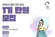 [경기탑뉴스=한진선 기자] 포천문화관광재단은 지역 아동·청소년을 위한 문화예술교육 프로그램 ‘2026 꿈의 극단 포천’의 1기 신규 단원을 오는 3월 12일까지 모집한다. ‘꿈의 극단’은 문화체육관광부가 주최하고 한국문화예술교육진흥원과 포천문화관광재단이 주관하며 포천시가 후원하는 사업으로, 아동·청소년이 예술 활동을 통해 자존감을 키우고 공동체 의식을 함양할 수 있도록 지원하는 문화예술교육 프로그램이다. 이번 ‘2026 꿈의 극단 포천’은 일반적인 연극 교육을 넘어 한국 고유의 전통 소리와 춤, 악기가 어우러지는 ‘국극(전통 뮤지컬)’을 특화 교육 과정으로 운영한다. 이를 통해 지역 아동·청소년들이 전통 예술을 놀이처럼 친숙하게 접하고, 우리 문화에 대한 이해와 창의적 표현 능력을 함께 키울 수 있도록 지원할 계획이다. 모집 대상은 초등학교 3학년부터 중학교 2학년까지이며, 해당 연령에 포함되지 않는 초등학교 1·2학년 아동도 ‘예비 단원’으로 신청할 수 있다. 모집 인원은 총 30명이다. 최종 선발된 단원에게는 오는 4월부터 11월까지 포천38문화예술창작소에서 매주 월요일 오후 4시부터 7시까지