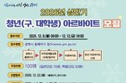 [경기탑뉴스=박봉석 기자] 광명시는 오는 8일부터 12일까지 ‘2026년 상반기 청년 아르바이트’ 참여자 100명을 모집한다. 모집 대상은 2025년 12월 1일 공고일 기준 광명시에 주민등록이 되어 있는 만 18~29세 미취업 청년(1995년 12월 2일~2007년 12월 1일 출생자)이다. 선발된 청년은 2026년 1월 5일부터 1월 30일까지 4주간(실근무 20일), 하루 7시간씩 근무하며 시급은 1만 320원이다. 근무 형태에 따라 출근일 기준 실내 근무 5천 원, 실외 근무 8천 원의 부대비를 추가 지급한다. 모집인원 100명 중 30명은 기초생활수급자, 차상위계층, 한부모 가구, 등록장애인, 2자녀 이상 가구, 보훈대상자, 북한이탈주민 등 사회적 배려계층을 별도 선발하며, 나머지 70명은 일반 청년을 대상으로 선발한다. 단, 광명시 청년일자리 사업(대학생 아르바이트, 청년 아르바이트)에 참여한 경험이 있는 경우 지원이 제한된다. 이 사업은 광명시청 본청·사업소·행정복지센터·돌봄기관·초등학교 등에서 행정 보조와 현장 지원 업무를 경험할 수 있는 단기 일자리 프로그램