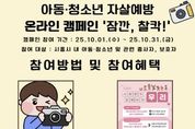 [경기탑뉴스=박봉석 기자] 시흥시자살예방센터는 오는 10월 1일부터 31일까지 한 달간 아동ㆍ청소년을 대상으로 생명존중 인식 확산 캠페인을 운영한다. 이번 캠페인은 아동ㆍ청소년이 심리적 지지를 얻고 생명의 소중함을 되새기도록 돕는 한편, 이를 누리소통망(SNS)을 통해 또래와 나눌 수 있도록 마련됐다. 캠페인 참여 방법은 시흥시 관내 교육기관, 행정복지센터, 아동ㆍ청소년 관련 기관 등에 부착된 자살 예방 홍보 스티커를 촬영한 후, 개인 누리소통망(인스타그램)에 스토리 또는 게시물 형태로 올리면 된다. 이후 해당 게시물을 캡처해 정보무늬(큐알코드)를 통해 연결된 네이버 폼에 제출하면 참여가 완료된다. 이기연 시흥시자살예방센터장은 “이번 캠페인이 아동ㆍ청소년들이 온라인 공간에서 자신과 친구들의 소중함을 되돌아보는 계기가 되길 바란다”라며 “많은 청소년이 적극적으로 동참해 건강한 생명존중 문화가 확산하길 기대한다”라고 말했다.