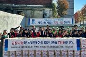 [경기탑뉴스=한진선 기자] (사)경기도여성단체협의회 김포시지회가 지난 11일 사우문화체육광장에서 ‘한마음 사랑의 김장나누기’ 행사를 성황리에 개최했다. 행사에 격려하기 위해 참석한 김병수 김포시장은 직접 배추를 버무리며 이웃사랑 실천에 동참하고, 이웃돕기를 위해 헌신하는 여성단체 회원들과 자원봉사자들에게 감사의 뜻을 전했다. 이번 행사는 (사)경기도여성단체협의회 김포시지회, 김포시 여성의용소방대, 한국자유총연맹 김포시지회 여성회, 새마을부녀회 김포시지회, 까치봉사회, 정겨운 마을회, 배소나 모임, 정숙c예술기획, 희나람, 생활개선회 김포시지회 회원 및 김포시 자원봉사센터 봉사자 200여명이 연합하여 정성껏 김치를 담그며 지역사회에 따듯한 나눔의 손길을 전했다. 이날 담근 김장김치는 김포시 관내 한부모가정을 비롯한 소외된 이웃들 1,400가구에 전달되어 사랑의 온기를 전할 예정이다. 박헌옥 (사)경기도여성단체협의회 김포시지회장은 “여러 단체가 모여 최초로 행사를 진행했는데 화합이 잘 이루어져 김장을 잘 마칠 수 있었다”며 “앞으로도 이웃이 서로 돕고 함께 성장하는 ‘따듯한 김포’를 만들어 나가는 것에 적극 동참하