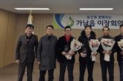[경기탑뉴스=한진선 기자] 여주시 중앙동체육회는 지난 27일 중앙동행정복지센터에서 체육회장 이·취임식을 개최했다. 이날 행사에는 이충우 여주시장, 박두형 여주시의회의장 및 시의원, 김규창 경기도의회 부의장 및 도의원, 장노훈 여주시체육회 수석부회장을 비롯해 관내 기관·단체장 등 100여 명이 참석해 자리를 빛냈다. 참석자들은 이임하는 장창호 회장에게 공로패와 감사패를 전달하며 그간의 노고에 감사를 전하고, 제6대 회장으로 취임한 이효인 회장의 새로운 출발을 축하했다. 장창호 이임 회장은 제5대 중앙동 체육회장으로 재임하며 시민의 날 및 동민의 날 체육행사, 제1회 중앙동 체육회장배 족구대회 등 다양한 체육 행사를 성공적으로 개최해 생활체육 활성화와 지역 체육 발전에 기여했다. 이충우 여주시장은 “중앙동 체육회가 지역 주민들의 건강과 화합을 이끄는 중심 역할을 해주길 기대한다”며 “여주시도 생활체육 활성화를 위해 지속적으로 지원하겠다”고 밝혔다. 제6대 중앙동 체육회장으로 취임한 이효인 회장은 “중앙동 체육회의 든든한 기반을 만들어 주신 장창호 회장님과 임원진 여러분께 감사의 말씀을 드린다”며 “앞으