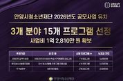 [경기탑뉴스=박봉석 기자] 안양시청소년재단은 2026년 국가 및 공공기관, 교육청 등이 추진하는 주요 공모사업 3개 분야에서 15개 프로그램이 선정되어 총 1억 2,810만 원 규모의 사업비를 확보했다고 3일 밝혔다. 선정 분야는 ▲안양과천교육지원청 '안양과천미리내공유학교 지역맞춤형 프로그램' ▲한국청소년활동진흥원 '우수 청소년활동 프로그램 지원사업' ▲국가보훈부 '보훈 테마활동' 등으로, 재단 청소년시설의 전문성과 프로그램 기획 역량이 대외적으로 인정받은 결과다. 먼저 안양과천교육지원청이 추진하는 '미리내공유학교 지역맞춤형 프로그램' 공모에서 7개 사업 총 5,610만 원 규모의 사업이 선정됐다. 해당 사업은 지역 자원을 활용한 융합형 교육 프로그램을 통해 청소년의 창의성, 진로역량, 디지털 역량을 강화하는 사업으로, 동안청소년수련관을 비롯한 재단 소속 7개 청소년시설이 참여하여 과학, 문화예술, 디지털, 진로 체험 등 다양한 프로그램을 운영할 예정이다. 또한 한국청소년활동진흥원이 주관하는 '우수 청소년활동 프로그램 지원사업' 공모에서는 재단 소속 6개 기관이 선정되어 국비 5,100만 원을 확보했다. 전국