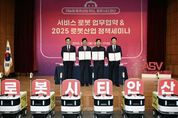 [경기탑뉴스=박봉석 기자] 안산시는 지난 10일 (재)경기테크노파크 다목적실에서 관내 기업들과 ‘서비스로봇 업무협약·안산시 로봇산업 정책세미나’를 개최하고, 국내 최초로 캠퍼스형 자율주행 배달로봇 ‘개미’를 도입한다고 11일 밝혔다. 이날 행사는 ‘2025 로봇 인식확산 사업’의 일환으로 안산시의 로봇산업 육성 지원 방향을 공유하고 로봇 수요 기업의 지원 방안을 모색하기 위해 마련됐다. 행사에는 로봇공정 도입을 희망하는 관내 100여 개 기업과 안산로봇실무협의체 참여기관이 참여했다. 이번 로봇산업 정책세미나는 ▲로봇산업 현장간담회 ▲로봇기업 업무협약 ▲제조현장 로봇공정 사례 발표 ▲내년도 정부-경기도-안산시 로봇추진 사업설명회 ▲로봇공급기업 현장견학 등의 순으로 진행됐다. 이날 간담회에서는 관내 기업들이 로봇공정을 도입하면서 겪는 애로사항을 청취하는 시간이 마련됐으며, 이민근 시장은 직접 사업체 관계자들에게 시에서 제공 중인 지원 사항을 설명했다. 아울러, 최근 경제자유구역으로 지정된 사동 안산사이언스밸리지구(ASV)와 연계한 시 첨단로봇산업 육성 지원 방안 등을 소개해 기업인들의 관심을 끌었다.