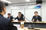 [경기탑뉴스=박봉석 기자] 경기도와 민주노총 경기도본부가 5일 경기도청에서 노정 간 신뢰를 바탕으로 한 협력 선언을 했다. 이날 행사에는 고영인 경기도 경제부지사를 비롯해 김도형 경기도 노동국장, 김진희 민주노총 경기도본부장 등이 참석했다. 양측은 지난 1월 노정협의 상견례를 통해 첫 공식 만남을 가진 바 있다. 이번 협력 선언을 통해 경기도와 민노총 경기도본부는 ▲공공부문 노동권 보장 및 확대 ▲노동가치를 우선으로 한 행정 구현 ▲연 2회(상․하반기) 경기도-민노총 경기도본부 간 정례회의 추진 ▲경기도 정책의 공공성 강화 및 폭넓은 대화 창구 구축을 약속했다. 경기도는 노정협의 요구안의 정책 반영 논의를 위해 3월 중 관계부서 실무회의를 열 계획이다. 고영인 경제부지사는 “노동 존중 사회로 나아가는 실질적인 변화를 위해 경기도와 민노총이 협조 체계를 구축하고 지속적인 소통과 협력을 이어나갈 것”이라고 말했다. [뉴스출처 : 경기도]