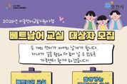 [경기탑뉴스=한진선 기자] 포천시 직영 ‘더 큰 행복 포천시가족센터’는 다문화 자녀의 이중언어 역량 강화를 위한 2026년 이중언어 교육지원사업 베트남 교실 수강생을 모집한다. 베트남어 교실은 다문화 자녀가 부모님의 모국어인 베트남어를 자연스럽게 습득하게 하여, 이중언어 강점을 가진 글로벌 인재로 성장하도록 돕기 위해 마련했다. ‘두 개의 언어, 두 배의 행복’이라는 슬로건 아래 진행되는 이번 교육은 학습자들의 접근성을 높이기 위해 센터와 일동도서관 두 곳에서 나누어 진행된다. 센터 내 교육실에서 진행되는 ‘베트남어 교실’은 3월 27일부터 12월 12일까지 매주 금요일 저녁 17시 30분부터 19시까지 운영되며, 현재 수강생을 모집 중이다. 일동도서관(1층 세미나실)에서 운영하는 ‘찾아가는 베트남어 교실’은 3월 18일부터 12월 12일까지 매주 수요일 저녁 17시 30분부터 19시까지 진행한다. 교육은 ▲발음 및 성조 훈련 ▲일상생활 중심의 회화 ▲듣기·말하기·읽기·쓰기 통합 학습 ▲다양한 콘텐츠 활용 교육 및 문화 탐험 등 아이들이 흥미를 잃지 않고 즐겁게 언어를 학습할 수 있는