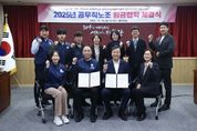 [경기탑뉴스=박봉석 기자] 의왕시가 11월 14일 시청 중회의실에서 공무직 대표노조인 공공운수노동조합 전국자치단체공무직본부 경기지역지부 의왕시지회(지회장 이태겸)와 2025년 임금협약을 체결했다. 이날 체결식에는 김성제 시장, 이태겸 의왕시지회장 등 양측 교섭대표와 교섭위원 12명이 참석했다. 올해 임금 협약은 지난 7월 교섭을 시작해 10월까지 총 4차례의 교섭 및 실무협의를 통해 이뤄졌으며, 주요 내용으로는 ▲전년 대비 기본급 3% 인상 ▲직종별 호봉 정액 추가 인상 ▲기본급에 대한 호봉 간 격차 일괄 인상 등이 포함됐다. 김성제 시장은 “이번 임금 협약은 노사 간 상호 존중과 협력을 바탕으로 이뤄진 의미 있는 결과”라며 “앞으로도 공무직 근로자들이 시민들에게 질 높은 행정서비스를 제공해 주기를 기대한다”고 말했다. 이태겸 회장은 “시 재정 상황이 여의치 않음에도 불구하고, 대화와 협의를 통해 원만한 결과를 도출하게 돼 기쁘다”며“앞으로도 시와 상생하는 노사관계를 이어가겠다”고 밝혔다.
