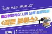 [경기탑뉴스=박봉석 기자] 군포시 중앙도서관은 시민이 직접 참여하는 낭독 콘텐츠 제작을 통해 공공 문화콘텐츠를 확산하고, 시민의 창작 경험을 지원하기 위해 미디어창작실 시민 낭독 프로젝트 '골든 보이스'를 운영한다. '골든 보이스'는 시민이 직접 문학 작품이나 개인 창작물을 낭독하고 이를 도서관 미디어창작실에서 전문 장비를 활용해 녹음·편집하여 오디오북 콘텐츠로 제작·공개하는 프로그램이다. 이번 프로젝트는 단순한 낭독 체험을 넘어 기존 활자에 국한됐던 작품을 시민의 목소리로 직접 듣고 나누는 참여형 프로그램으로 마련됐다. 낭독 경험이 많지 않더라도 문학과 낭독에 관심이 있는 시민이라면 누구나 참여할 수 있다. 프로그램은 2026년 3월 3일부터 5월 28일까지 중앙도서관 1층 미디어창작실에서 운영하며 참여 대상은 군포시 성인 10명 내외이다. 낭독 자료는 참여자의 개인 창작물(에세이, 시 등) 또는 저작권 보호기간이 만료된 한국 문학 작품을 활용한다. 참여 신청은 2026년 1월 26일부터 2월 20일까지 군포시 도서관 누리집을 통해 온라인으로 접수하며 선정된 참여자들은 단체 소통 채널을 개설해 약