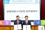 [경기탑뉴스=박봉석 기자] 광명시가 민관 협력을 기반으로 복지 사각지대 시민을 위한 지원 체계를 강화한다. 시는 9일 시청 대회의실에서 광명시사회복지협의회와 ‘광명희망나기운동사업’ 업무협약을 체결하고 민관 협력 복지사업을 이어가기로 했다. 이번 재협약은 기존 협약(2023.3.7~2026.3.6.)이 지난 6일 만료되면서 사업을 안정적으로 운영하기 위해 추진했으며, 협약 기간은 2026년 3월 7일부터 2029년 3월 6일까지 3년이다. 이날 협약식에서는 ‘광명희망나기운동’ 헙무협약과 함께 복지 사각지대 시민 지원을 위한 ‘광명 희망-올케어(All-Care)’ 전달식도 열렸다. ‘광명희망나기운동사업’은 법과 제도 지원이 닿지 않는 시민을 돕기 위해 추진하는 광명시 대표 민관 협력 복지사업이다. 광명시는 정책과 예산 지원, 대상자 발굴을 맡고, 광명희망나기운동본부는 자원 모금과 배분을 담당한다. 지역 복지기관은 현장에서 사업을 수행한다. 시는 이번 업무협약을 계기로 광명시사회복지협의회와 함께 ‘시민 누구도 소외되지 않는 촘촘한 복지도시 광명’을 목표로 위기 예방부터 대응, 회