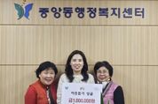 [경기탑뉴스=박봉석 기자] 과천시 중앙동 통장단은 지난 1월 9일, 중앙동 행정복지센터에 성금 100만 원을 기부했다. 이번 성금은 중앙동 행정복지센터 내 커피 자판기 운영 수익금을 모아 마련됐으며, 성금은 지역 내 취약계층 지원을 위해 사용될 예정이다. 중앙동 통장단은 이번 성금 기탁뿐만 아니라, 평소에도 지역사회를 위한 다양한 봉사활동에 앞장서 왔다. 지난 동지에는 직접 팥죽을 쑤어 어르신들께 전달하는 ‘이웃사랑 팥죽 나눔’ 행사를 진행했으며, 관내 복지관 등에서 정기적인 배식 봉사에도 참여하고 있다. 이명숙 중앙동 대표 통장은 “주민들이 오가며 마신 커피 한 잔의 수익금이 모여 어려운 이웃에게 따뜻한 밥 한 끼, 든든한 힘이 될 수 있어 매우 기쁘다”라며, “앞으로도 소외된 이웃을 살피고 돕는 일에 최선을 다하겠다”라고 소감을 전했다. 신윤희 중앙동장은 “행정의 최일선에서 주민과 행정의 가교 구실을 훌륭히 수행해 주시는 통장님들의 노고에 깊이 감사드린다”라며, “성금은 도움이 필요한 이웃들을 위해 소중히 사용하겠다”라고 말했다.
