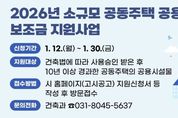 [경기탑뉴스=박봉석 기자] 안양시가 안전하고 쾌적한 주거환경 조성을 위해 ‘2026년 소규모 공동주택 공용시설물 보조금 지원사업’을 추진한다고 12일 밝혔다. 지원 대상은 건축법에 따라 사용승인 후 10년이 경과된 관리주체가 없는 소규모 공동주택의 공용 시설물이다. 지원 대상 사업은 ▲옥상 공용부분 및 지하주차장 방수공사 ▲재해·재난 발생 우려가 큰 위험시설 보수 ▲하수관 교체·보수 및 준설 ▲단지 내 차도 및 보도 보수 ▲장애인·노인·임산부 편의시설 설치 및 보수 등이다. 신청 기간은 이달 30일까지로, 안양시 공동주택 지원심사위원회의 심의를 거쳐 대상지가 선정되면 올해 5월부터 각 단지별 공사에 착수할 수 있다. 지원금액은 총 사업비의 50~90%이며, 단지당 최대 2000만원 이내이다. 더 자세한 내용은 시청 홈페이지의 새소식이나 고시공고, 건축과를 통해 확인 가능하다. 이번 사업은 관리주체가 없어 관리의 사각지대에 놓인 노후 소규모 공동주택의 공용시설물 보수·관리를 지원함으로써 주거환경을 개선하고 안전사고를 예방하기 위한 것으로, 2017년부터 9년째 시행되고 있다.