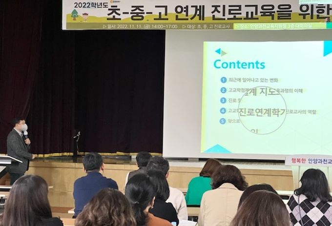 [경기탑뉴스=박봉석 기자] 안양과천교육지원청은 11월 11일, 2022 초-중-고 연계 진로교육을 위한 안양과천 연합 진로워크숍을 진행했다.