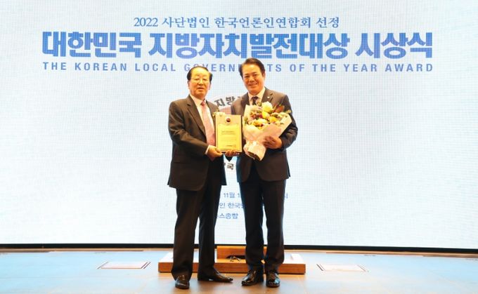 (사)한국언론인연합회가 주최하는 지방자치발전대상은 지방자치 발전과 지자체의 경쟁력 향상, 지방자치 성공 사례 발굴 등을 목적으로 규제개혁, 지역경제와 일자리 창출, 주민복지증진, 환경보전 등의 분야를 평가해 우수한 광역·기초지방자치단체를 선정하고 시상한다.