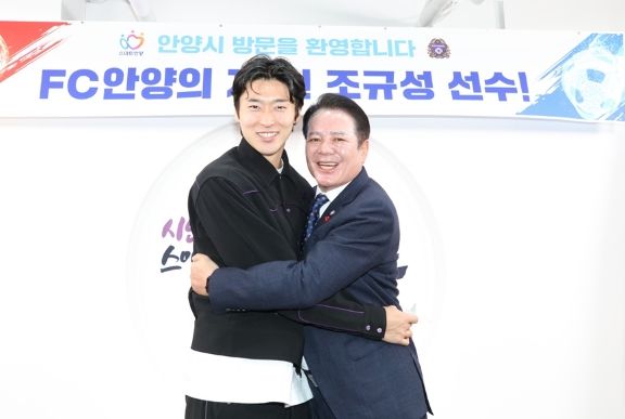 안양시에 따르면, 조규성 선수는 26일 안양시청에 찾아와 FC안양 구단주인 최대호 안양시장과 면담했다.