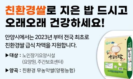 [경기탑뉴스=박봉석 기자] 안양시가 내년도부터 어르신의 건강한 식사 제공을 위해 노인장기요양시설에 친환경 무농약쌀 구입을 지원한다.