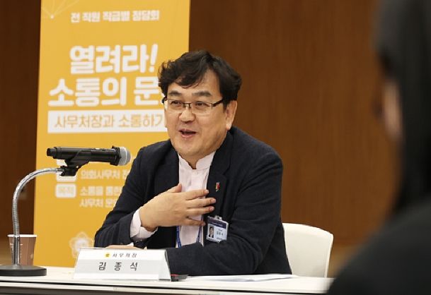김종석 사무처장은 지난 1월말 취임 직후, 일할 맛 나는 직장 분위기 조성을 위해 '열려라! 소통의 문!!'을 구상해 3월부터 추진하고 있으며, 5개 세부 프로그램 운영을 통해 직원 고충과 건의사항에 대한 촘촘한 의견수렴을 이어가고 있다.