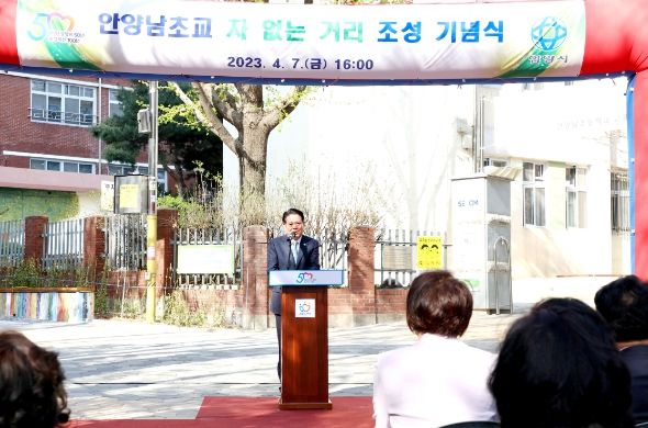 안양시는 7일 오후 4시 안양남초등학교 후문에서 ‘차 없는 거리 조성’ 기념식을 개최했다. 이날 기념식에는 최대호 안양시장을 비롯 최병일 안양시의회의장, 안양남초교 교직원 및 학교운영위원회 관계자, 갈산동 사회단체장과 주민 등 50여명이 참석해 안전한 차 없는 거리 조성을 축하했다.