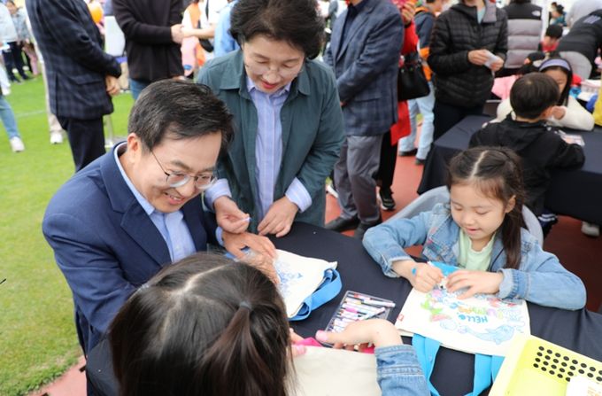 [경기탑뉴스=박봉석 기자] 김동연 경기도지사와 부인 정우영 여사가 어린이날 기념행사에 참석해 어린이들과 직접 에코백 만들기를 몸소 실천하면서 환경의 중요성을 전파했다.
